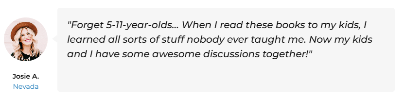 Books can be purchased separately, or in a combo pack of the complete collection. The books you see above are for children aged 5 to 11. There are more advanced books for those 12+ and into teenage. You will even find a collection for Toddlers.